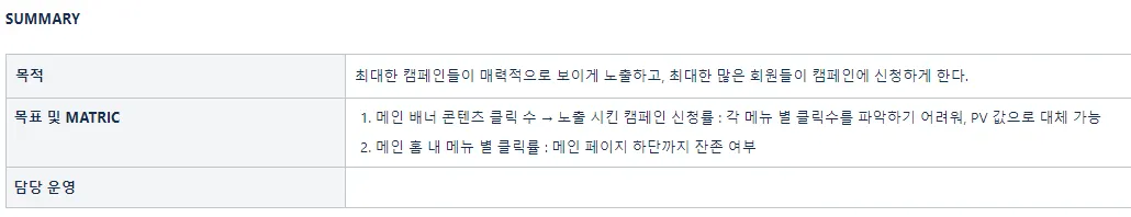 타겟 유저 : 핵심 회원을 기준으로 진행 된 서비스 개선이나, 전체 회원을 대상으로 진행 됨