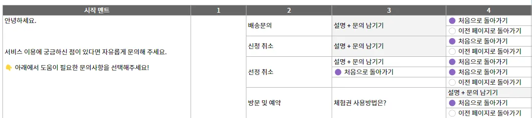 채널톡 챗봇 도입에 따른 시나리오 적용 및 연결 할 데이터 요청